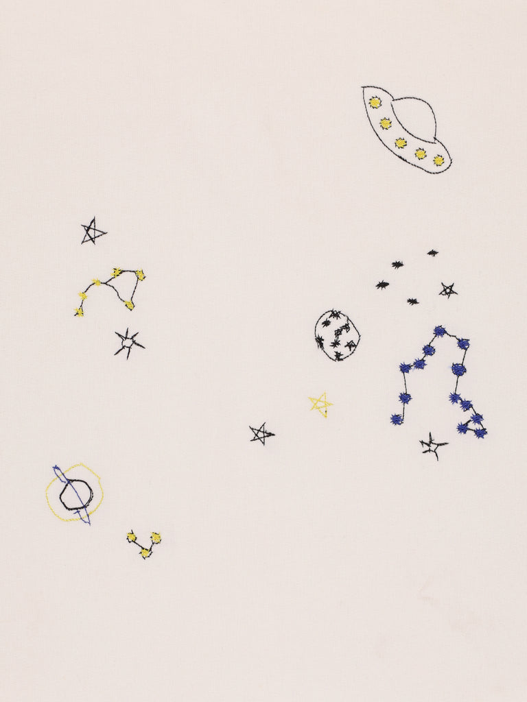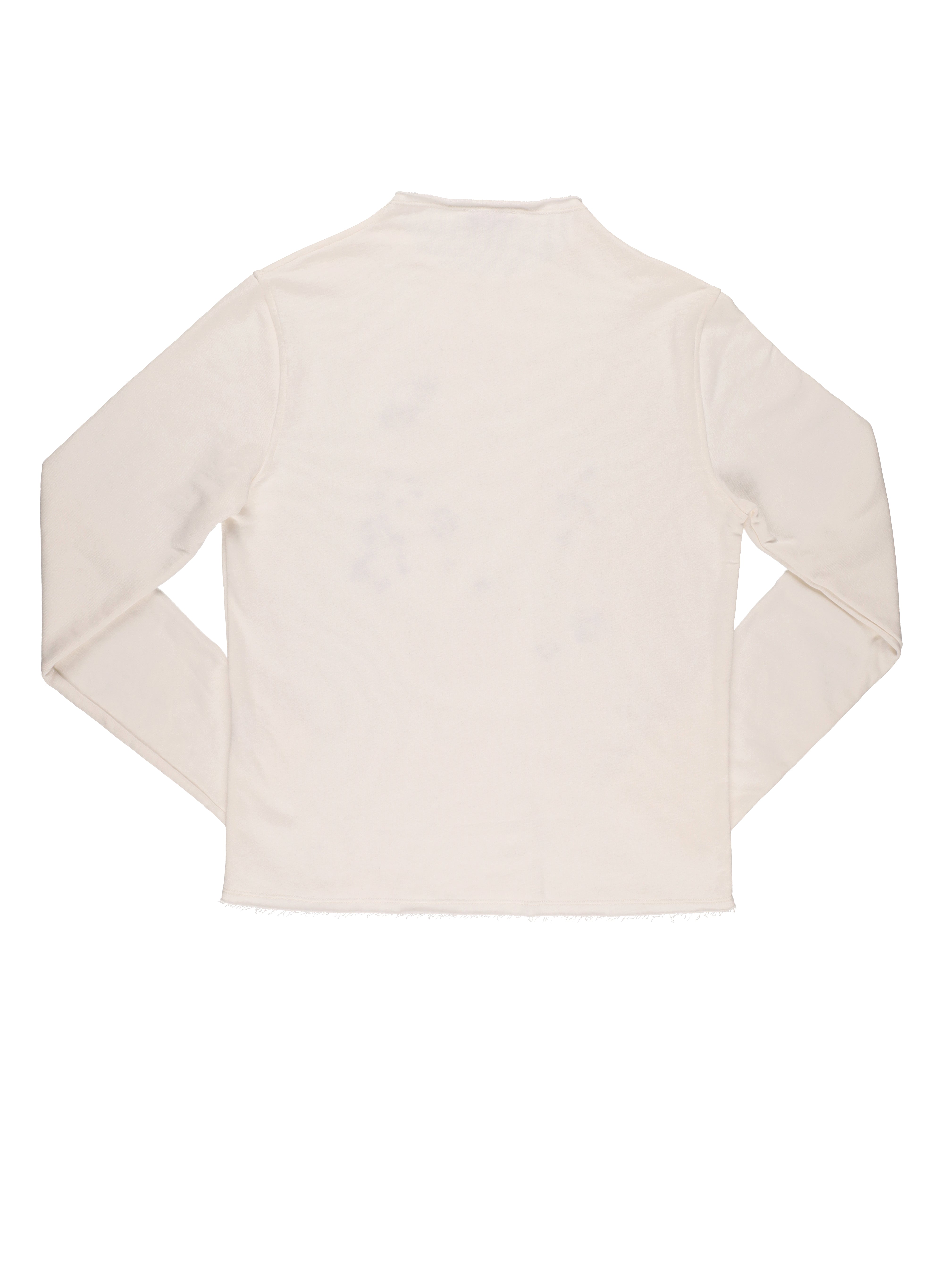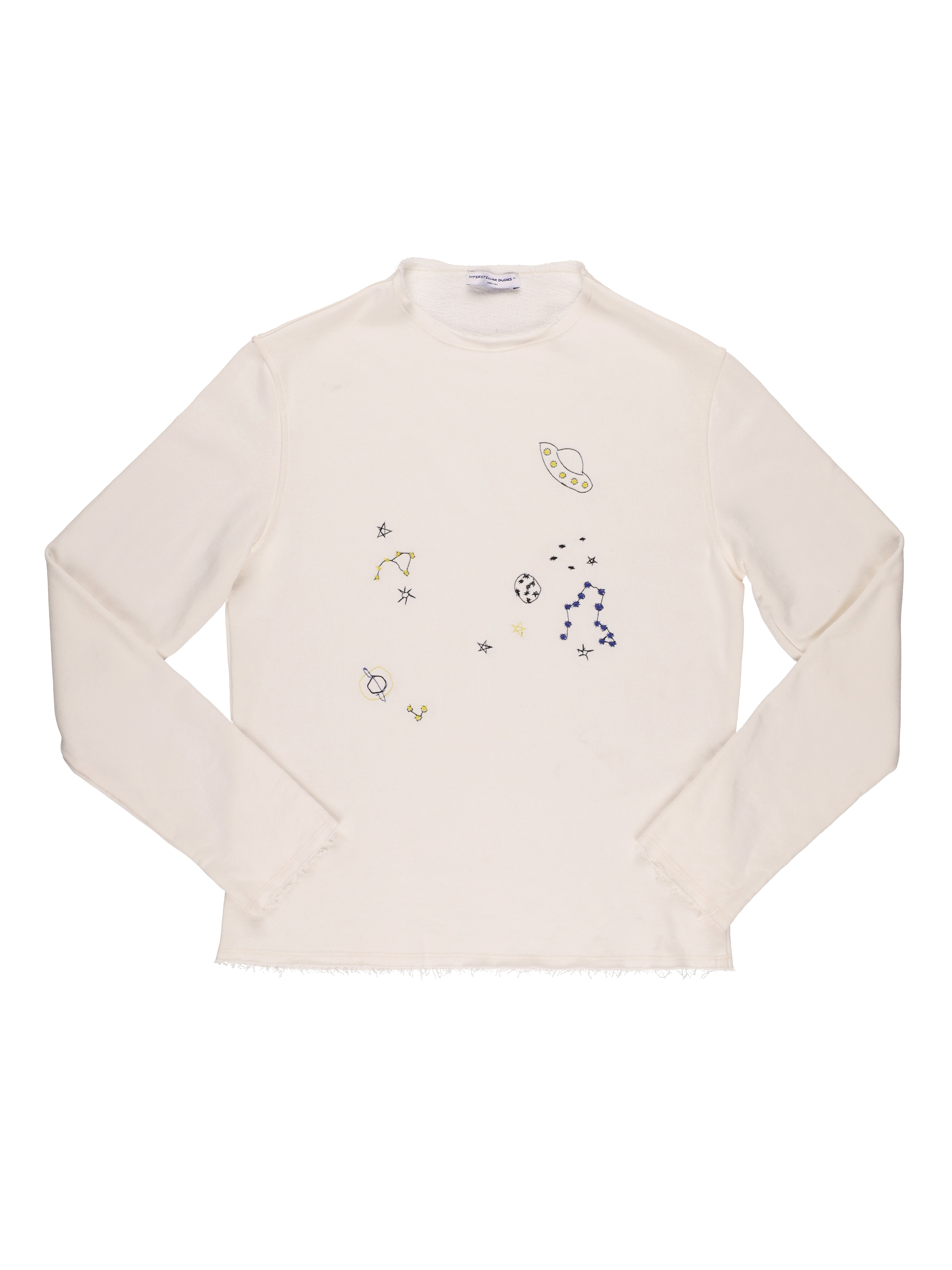 Felpa classica bianca con taglio vivo sul collo e ricamo dello "spazio" - 100% cotone