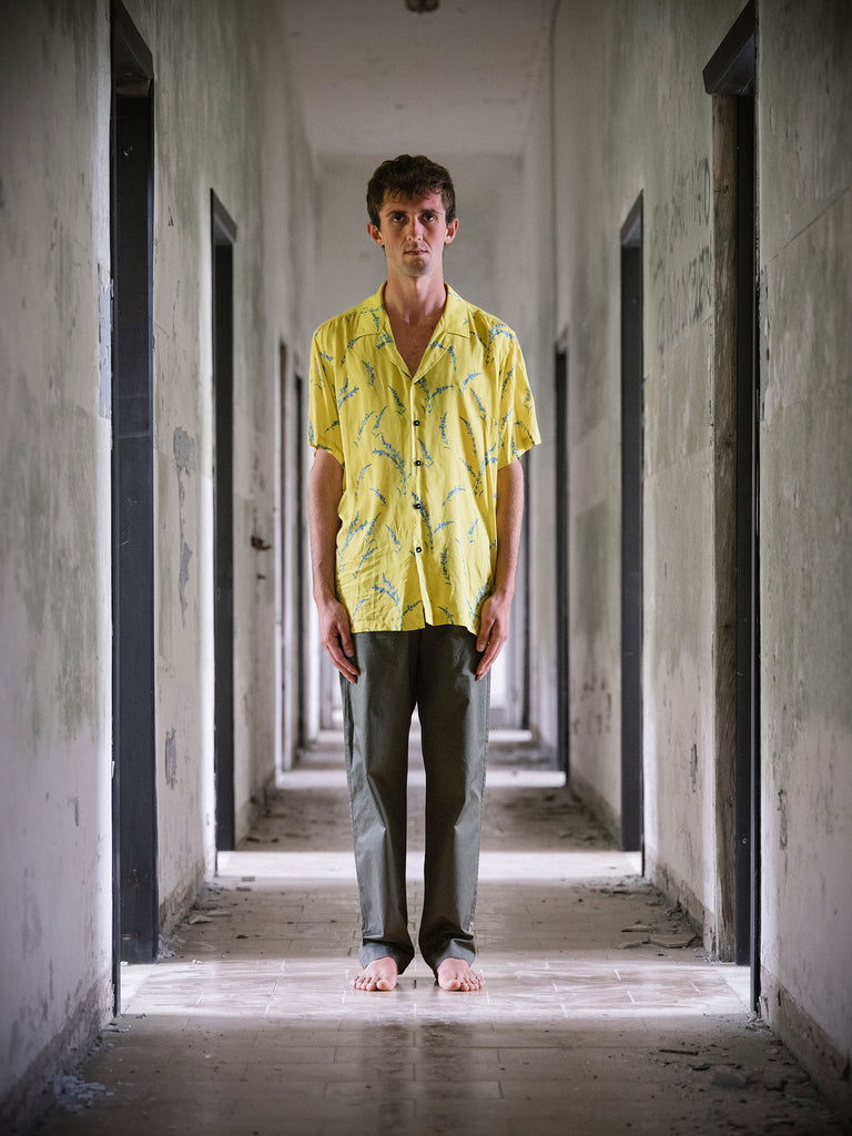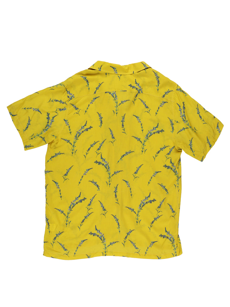 Camicia bowling uomo manica corta gialla floreale con ricamo sul fondo - 100% viscosa
