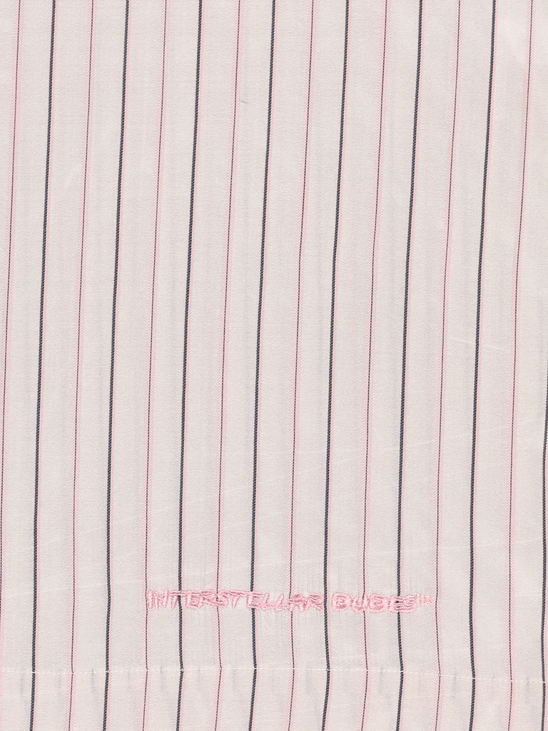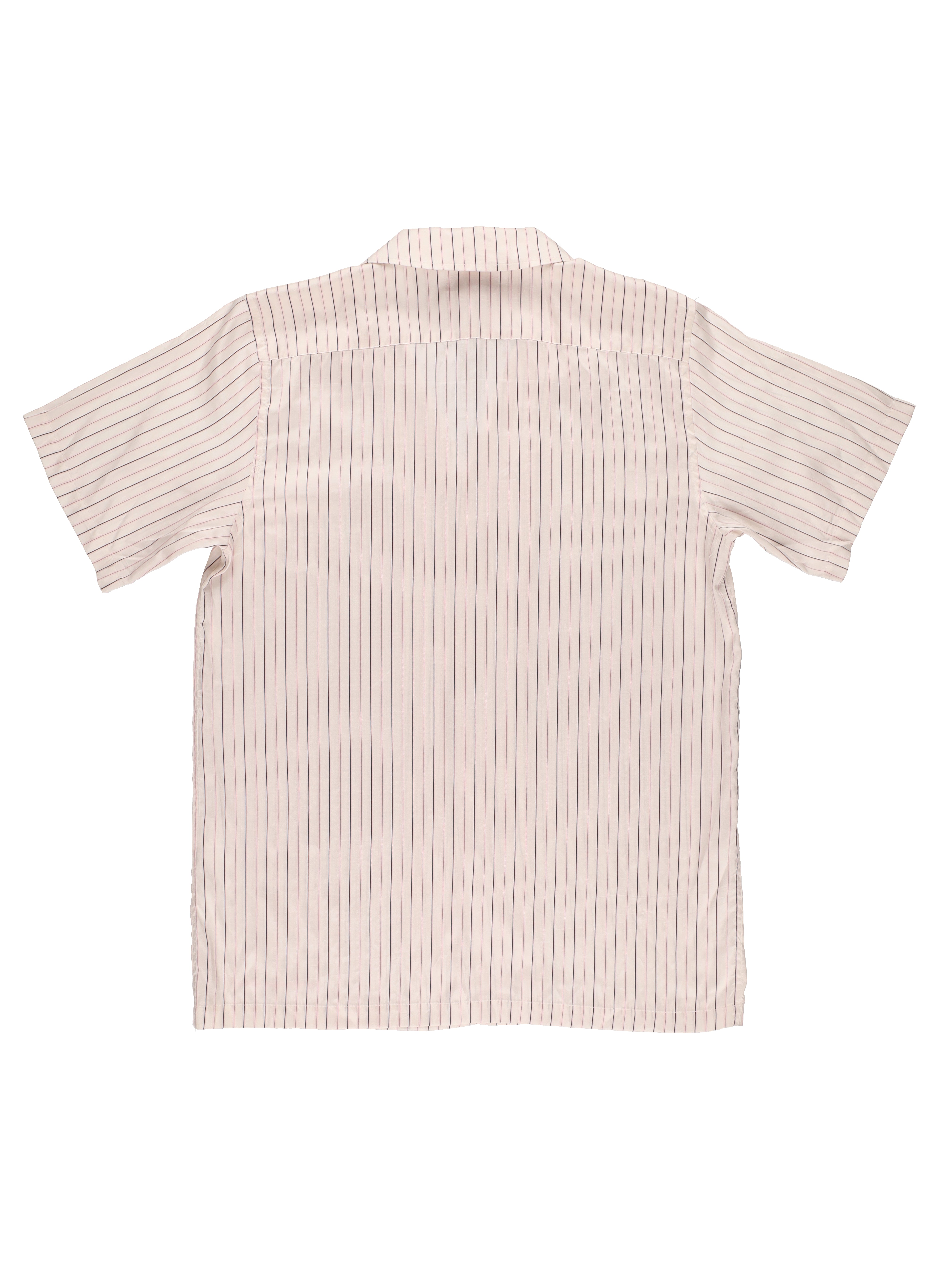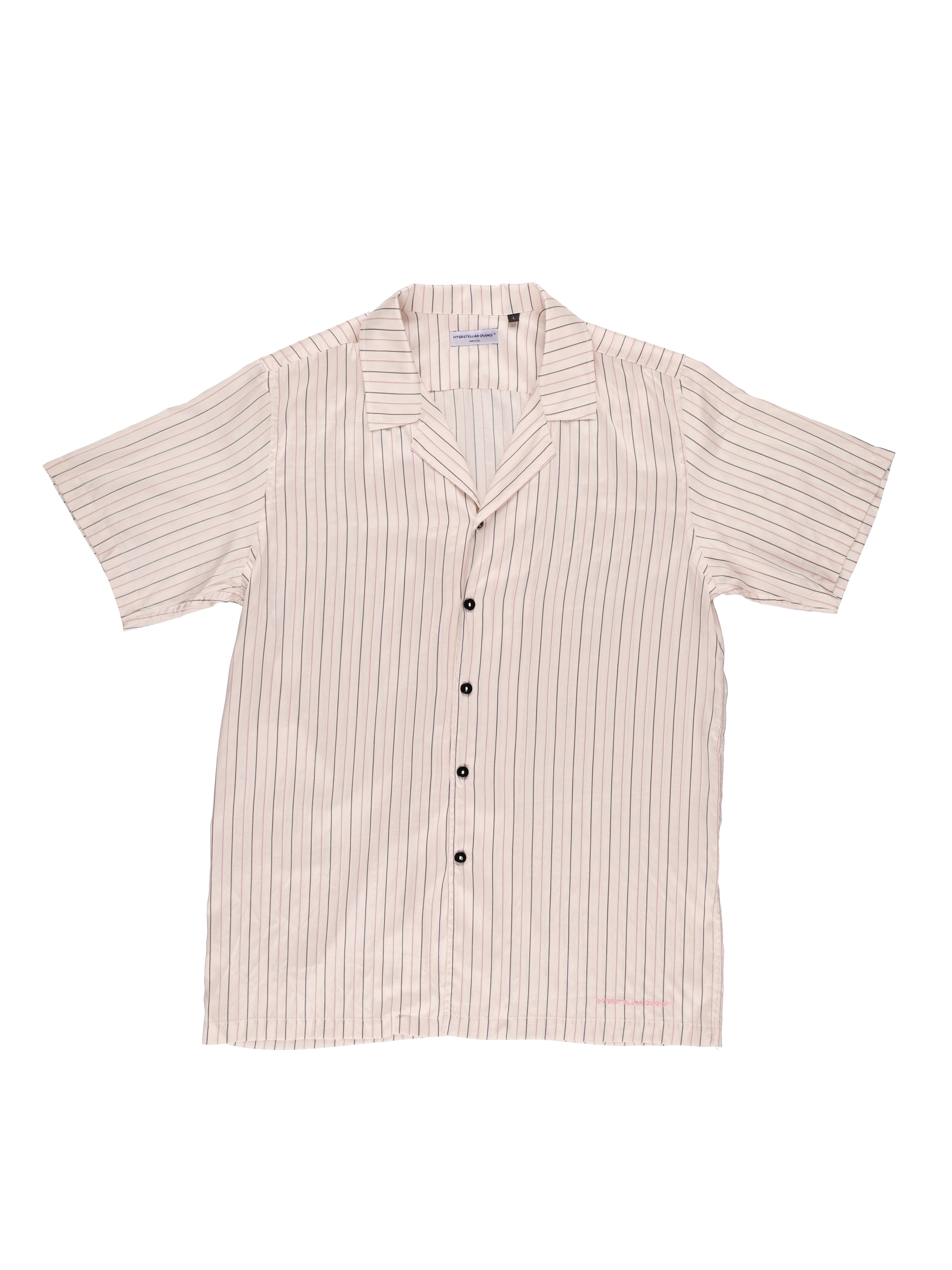 Bowling shirt short sleeves silk pink stripes embroidered - 85% se 15% co