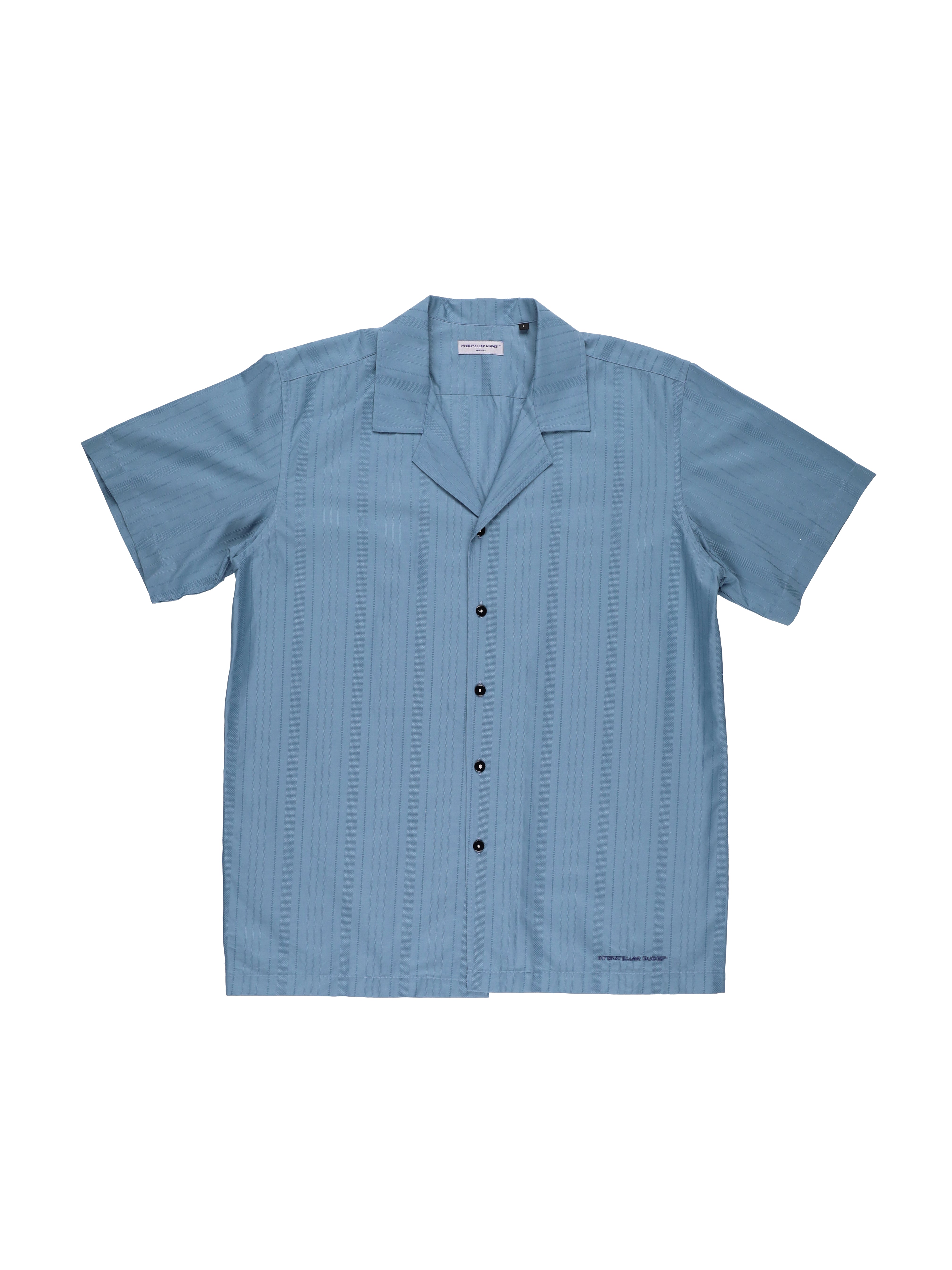Camicia bowling uomo manica corta color carta da zucchero con ricamo sul fondo  - 100% cotone
