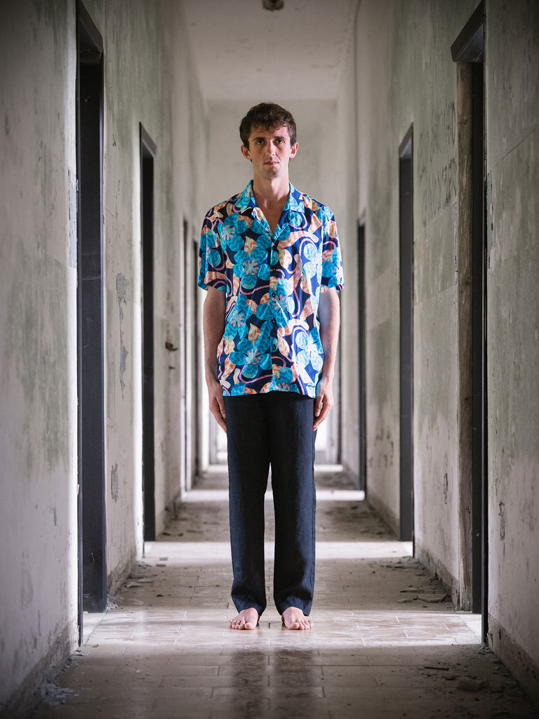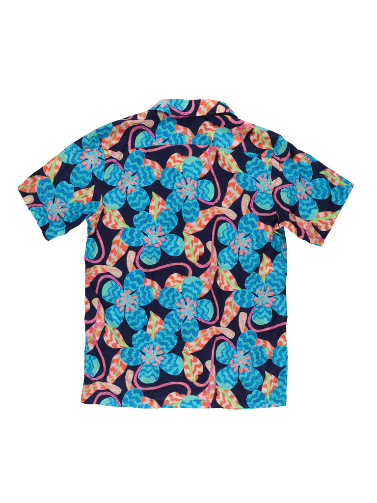 Camicia bowling uomo manica corta floreale con ricamo sul fondo - 100% viscosa
