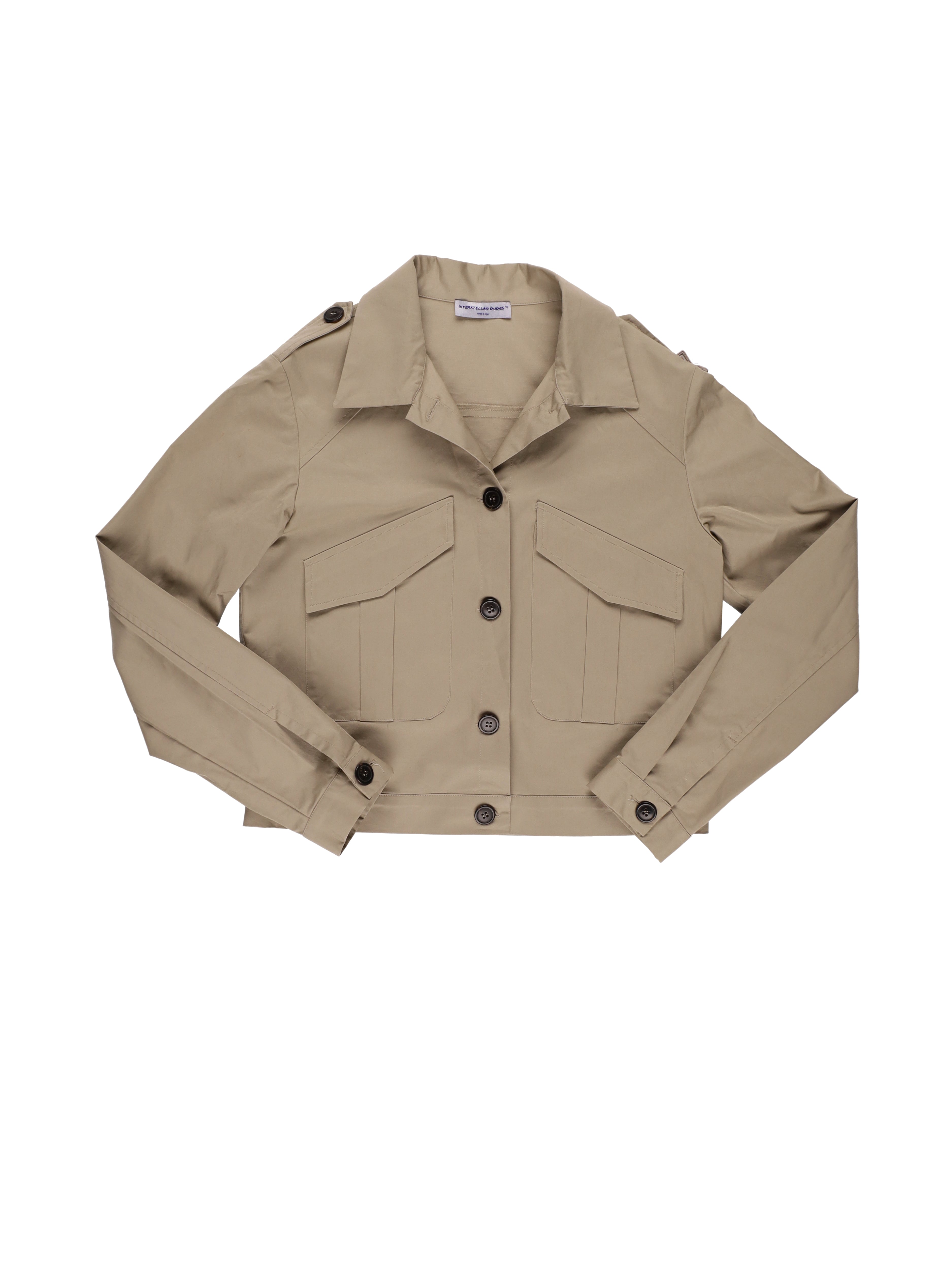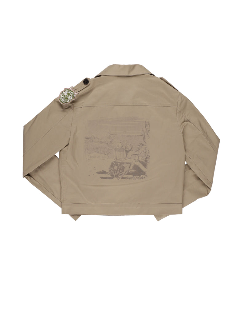 Giacca crop militare donna color sabbia con stampa sulla schiena  - 97% cotone 3% elastan